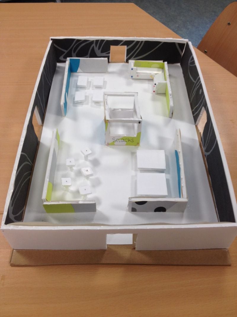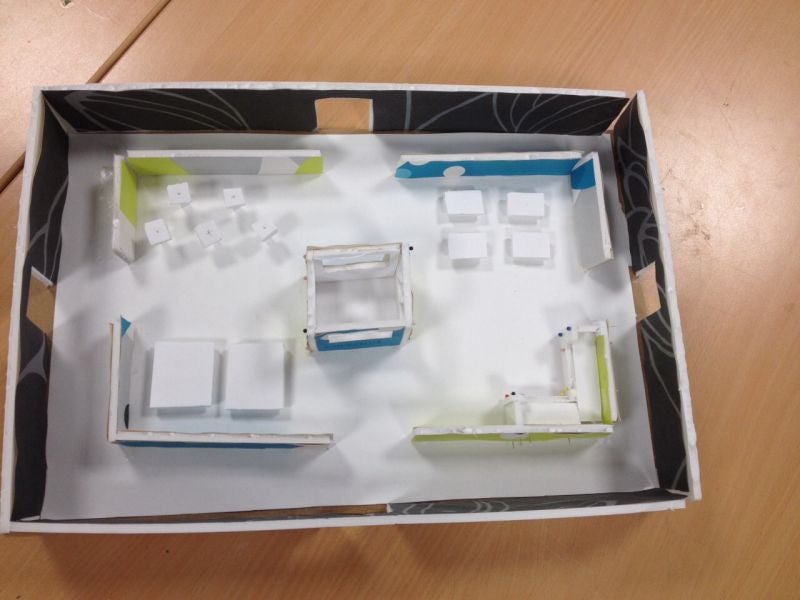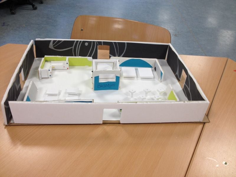 We moesten daarna zelf een maquette maken voor de aula van onze school. Dit zijn foto's van het eindresultaat