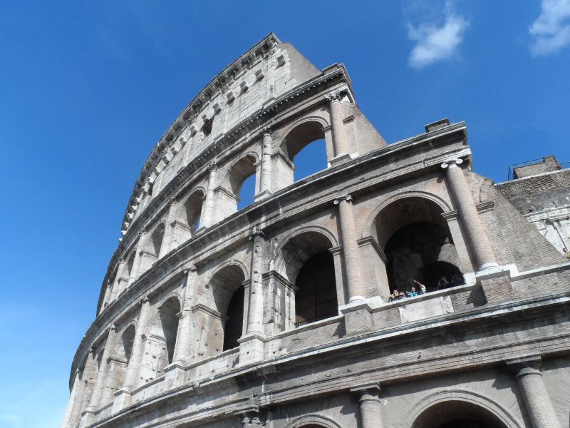 Het Colosseum is een heel groot en rond gebouw dat vroeger werd gebruikt voor gladiatorengevechten en gevechten tussen mensen en leeuwen. Het is de grootste bezienswaardigheid in Rome, er stonden ook een heleboel mensen in de rij om in het Colosseum te gaan. Zelf ben ik er niet in geweest omdat de rij echt te lang was. Ik heb hem wel van buiten goed gezien en wat afbeeldingen van hoe het er van binnen uitziet. Het gebouw is heel hoog en groot, ik vind het heel knap hoe ze het gebouwd hebben. Je ziet er ook verschillende bouwtechnieken in. De drie soorten zuilen zijn van onder naar boven: Dorisch (vrij simpel zonder versieringen) – Ionisch (Met aan de bovenkant en soort krul en iets sierlijker) - Korinthisch (Meer versieringen en heel sierlijk vergeleken met de andere twee soorten zuilen). Deze verschillende soorten zuilen zag je bij meer gebouwen zoals tempels terug.