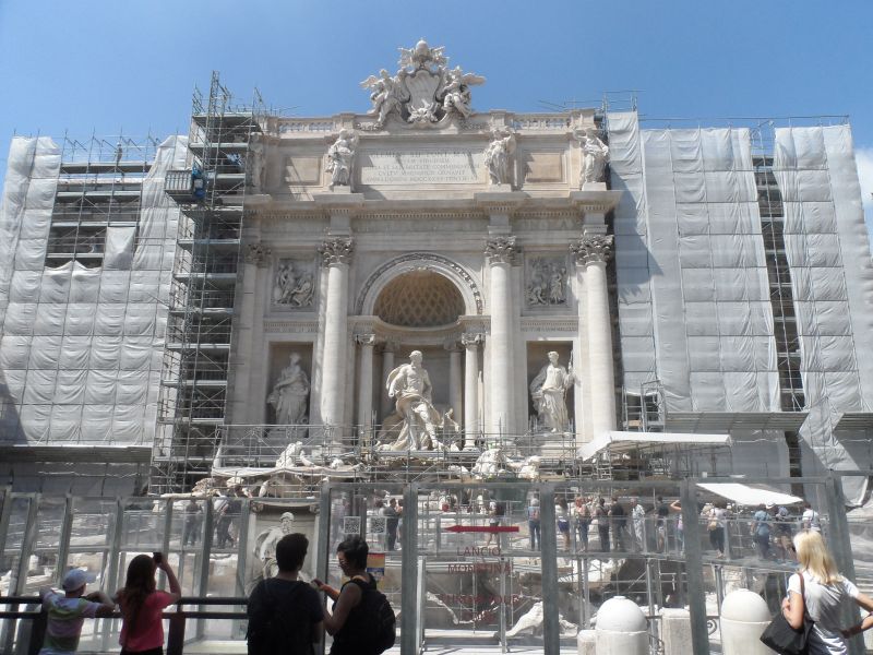 Dit is de beroemdste fontein van Rome, het ligt bij het pleintje Piazza di Trevi. Hij is gebouwd in opdracht van de Paus Clemens XII. Toen wij er waren was de fontein is restauratie dus konden we hem helaas niet helemaal goed zien en er was ook geen water. De fontein vond ik wel heel mooi versierd en gedetailleerd. Ook hierbij zag je de soorten zuilen. Het middelste standbeeld is de zeegod Oceanus en daar omheen staan allemaal andere jonge zeegoden en gevleugelde paarden.