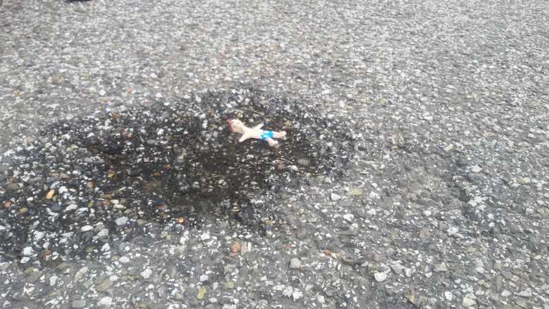 Ik vind deze straatkunst grappig omdat het heel grappig bedacht is maar ook weer heel simpel dat iedereen het kan begrijpen. Het is ook niet heel storend dus dat is ook goed en het heeft wel iets leuks vind ik.