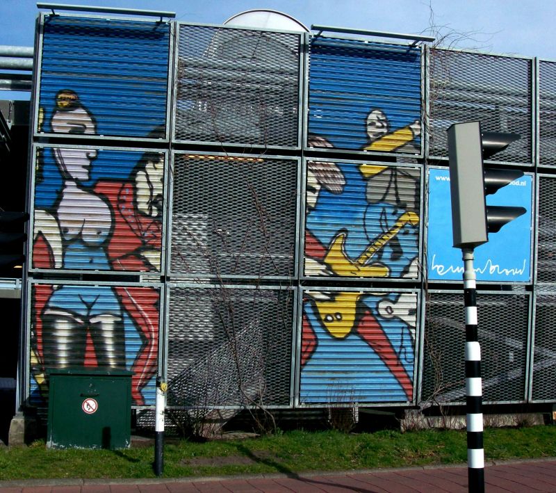 Bij het winkelcentrum Leidsenhage heb je ook wat graffiti. Dit vind ik juist wel een heel leuk en vrolijk effect geven.